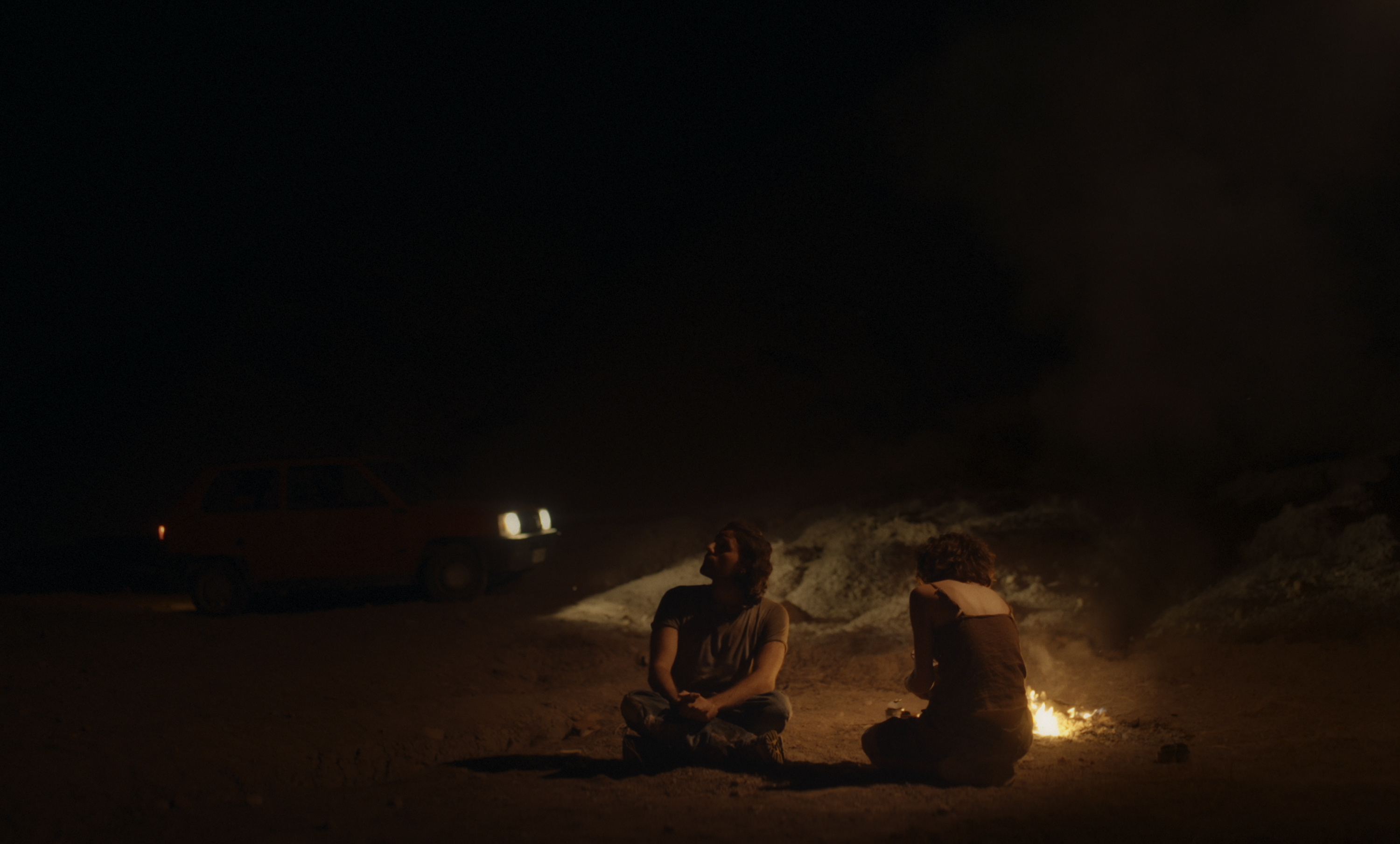 The chosen aspect ratio, 1.66:1, mirrors this ambiguity: positioned between the intimacy of 4:3 and the openness of 16:9, it allows the image to oscillate between enclosure and breath, much like the shots themselves. The desert reflects this same ambiguity and emotional nakedness, acting both as a symbol of emptiness and of an imminent catharsis, also due to the instability of its boundaries. The protagonists’ encounter, sudden like a mirage, forces them to confront themselves.